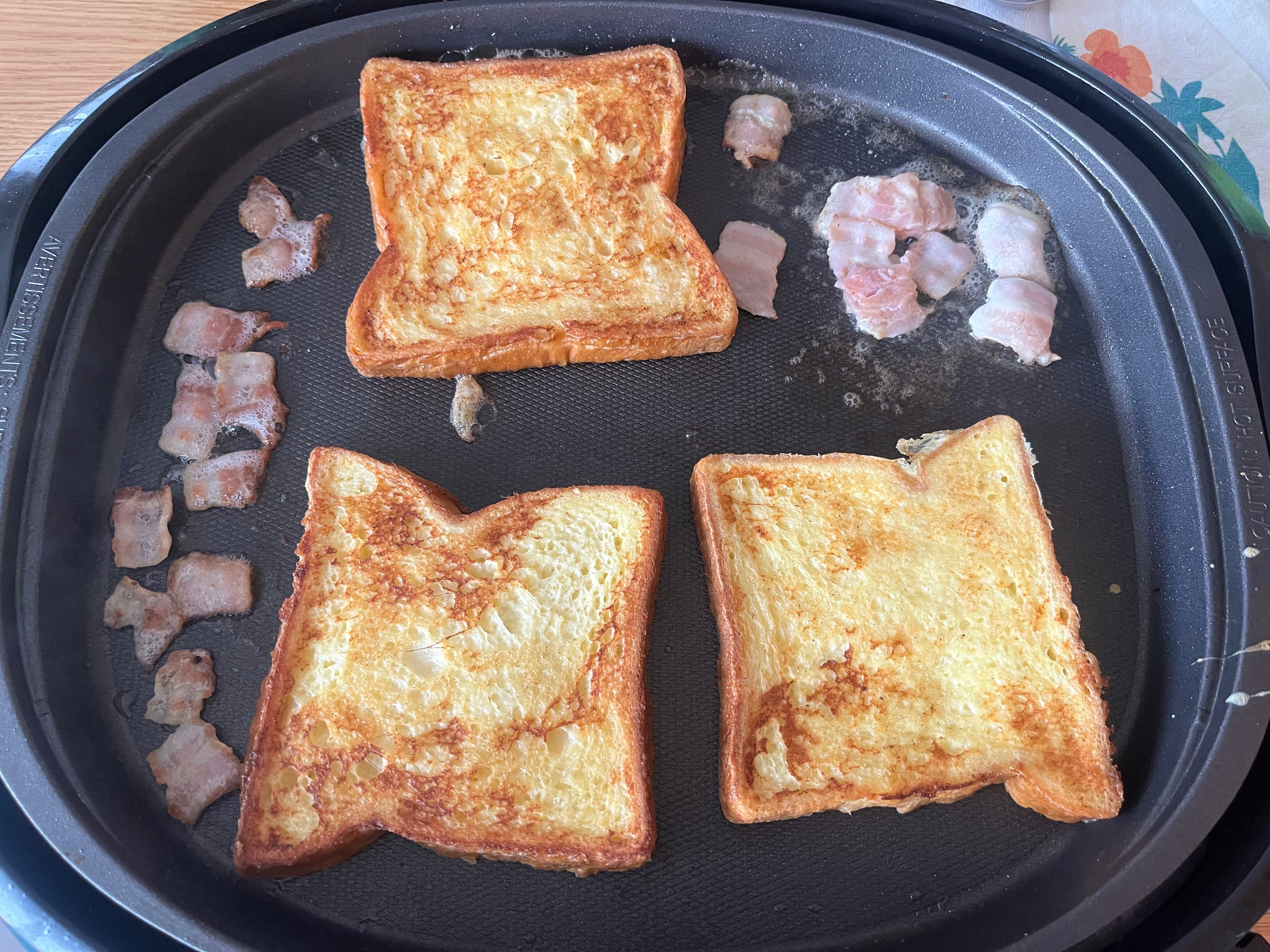 French toast has been a hit with the 4-year-old, and you can even cook some bacon or sausage alongside. You can do egg dishes, too.
