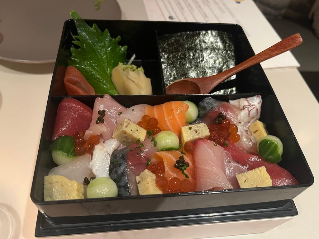 Chirashi, or chirashizushi4, or “scattered” sushi, is a dish where various pieces of seafood and other ingredients are placed on top of sushi rice. I remember chirashi being served at home when I was growing up, probably made by a grandma, so it’s a kind of sushi that home cooks can manage, similar to maki. In Chicago, you can find it at Gene Kato’s Momotaro and Itoko, and restaurants catering to Japanese people, especially in the suburbs. We did get a chirashi bento in Okayama this trip, but I shamefully failed to get a photo. The photo below is from Itoko, and it’s way more precious than your regular chirashi in Japan.